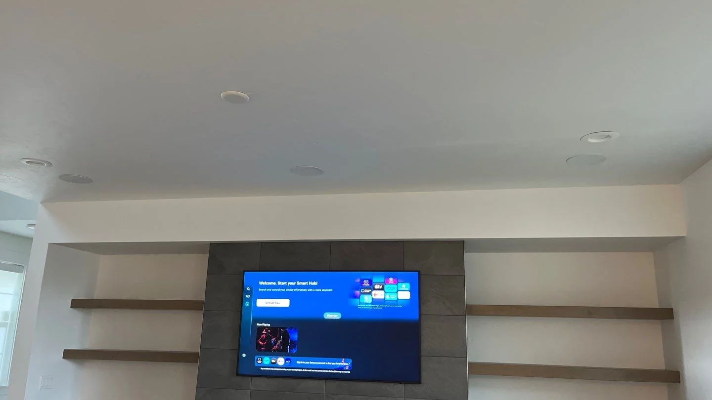 This Nampa project showcases a comprehensive smart home transformation in the living room and throughout the property. Our team expertly mounted a stunning 65" Samsung Frame TV on a non-standard wall and designed an immersive 5.1 surround sound system featuring premium, hand-cut, in-ceiling speakers powered by a state-of-the-art Onkyo A/V receiver. The integration of seamless wire concealment and custom installation ensures a clean, theater-quality experience for the homeowner. Beyond entertainment, the home was elevated with security and connectivity upgrades, including professional installation and configuration of upstairs Eero WiFi access points, a high-definition Ring Doorbell Pro, and two Ring Spotlight Camera Pros with solar power to monitor driveway and patio areas. Each system was meticulously configured for intuitive use, delivering both peace of mind and superior smart home comfort.